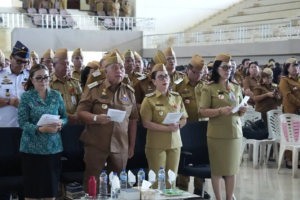 Apel kerja yang dihadiri oleh jajaran Wakil Bupati Vanda Sarundajang, Sekretaris Daerah, Lynda Deisye Watania, serta seluruh ASN yang mengenakan seragam lengkap dengan topi muts, menjadi ajang pemberian apresiasi terhadap dedikasi pegawai.