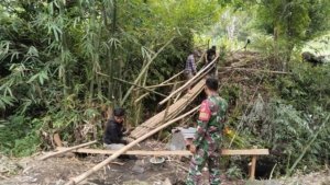 Kodim 1302/Minahasa Kawal Pembangunan Jembatan Perintis Garuda